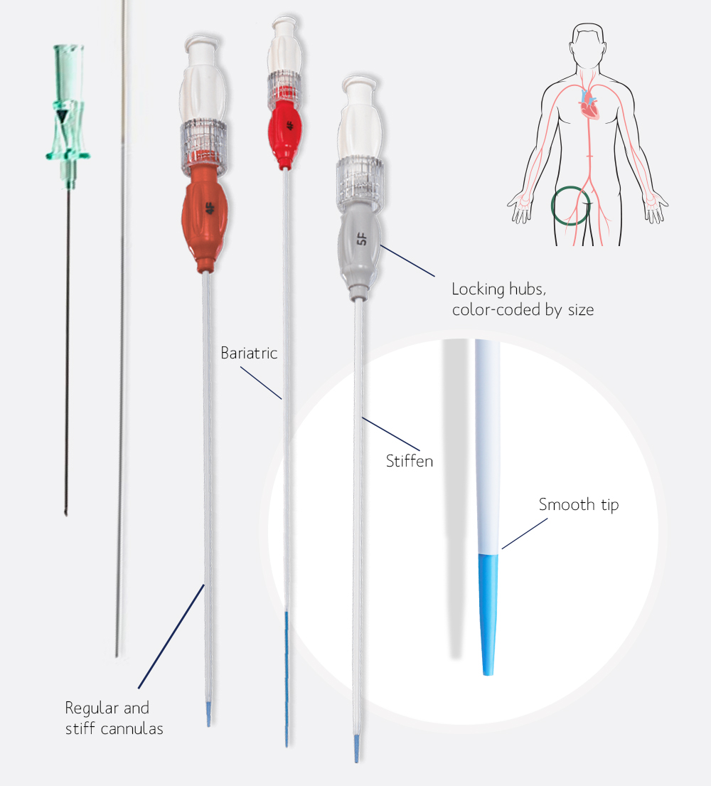 - 4F or 5F sheaths in multiple lengths